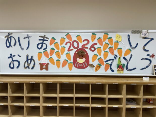 部屋に入ってくると、たくさんの子どもたちが「あけましておめでとうございます。」と挨拶をしてくれました。
